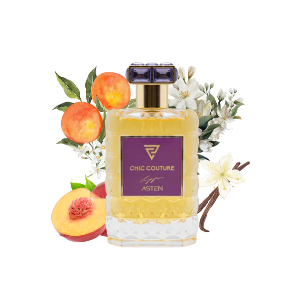 CHIC COUTURE by ASTEN is a fragrance that embodies sophistication, charm, and modern femininity. It opens with a sparkling burst of mandarin and red berries, setting a lively and elegant tone. The heart reveals a luxurious bouquet of jasmine, rose, and orange blossom — a tribute to couture beauty. As it settles, warm amber, vanilla, and musk create a smooth, sensual base that lingers gracefully. Designed for the woman who turns every moment into a runway, CHIC COUTURE ASTEN is confidence bottled a perfect balance of fashion, flair, and timeless allure.