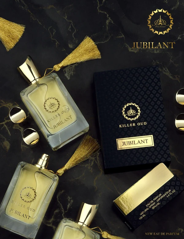 Unleash your inner power with Jubilant Killer Oud, a bold and intoxicating fragrance that commands attention. This scent opens with a fiery blend of spices and smoky accords, immediately setting a confident and daring tone. At its heart lies the signature note of aged oud — dark, woody, and deeply resinous — balanced by subtle hints of leather, incense, and amber. As it settles, warm and earthy notes linger on the skin, leaving a rich, masculine trail that captivates and empowers. Perfect for evening wear or statement moments, Jubilant Killer Oud is a celebration of strength, mystery, and magnetic charm.