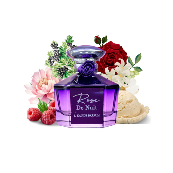 Rose de Nuit is a seductive and enchanting fragrance that captures the essence of a rose blooming under the moonlight. The scent opens with lush, velvety rose petals, deepened by hints of blackcurrant and dark berries, adding a rich and mysterious twist. At its heart, warm amber and soft spices create an inviting warmth, while a base of sensual musk and smooth woods leaves a lasting, elegant trail. Perfect for evening wear, Rose de Nuit evokes romance, mystery, and timeless sophistication a true celebration of the night’s beauty.