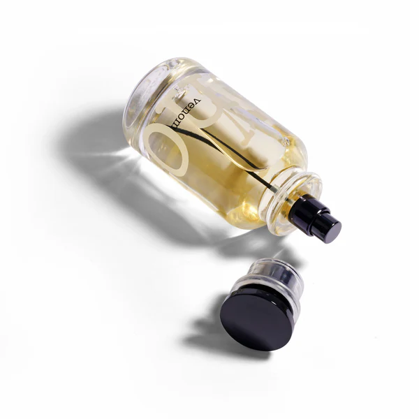 Venom is an intriguing and captivating fragrance that strikes the perfect balance between floral, musky, and woody notes. The perfume opens with the calming, herbal essence of lavender, setting the stage for the more complex heart of the fragrance. In the middle, iris and ambrette (musk mallow) offer a soft, floral warmth, complemented by the sweetness of pear. The fragrance finishes with a grounding base of Virginia cedar and vetiver, adding a rich, woody depth to the scent.